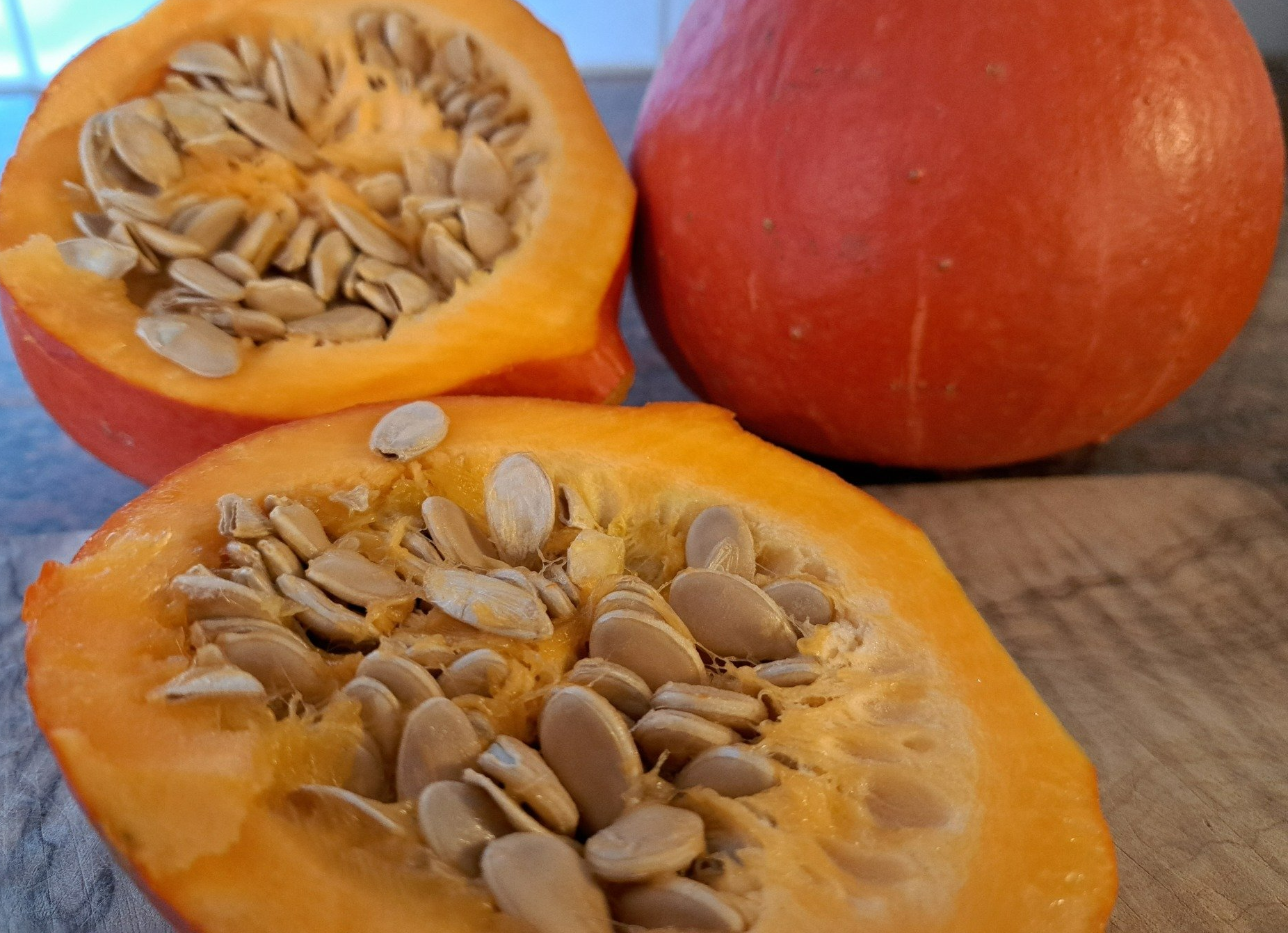 Mein liebster Speisekürbis ist der Hokkaidokürbis Deshalb habe ich über diesen recherchiert und möchte ihn vorstellen. Er eignet sich allerdings nicht zum Schnitzen von Kürbisleuchten im Herbst – hier ist die Sorte mit passenden Namen „Ghost Rider“ besser geeignet, deren Bestandteile (außer die Schale) allerdings auch gut in der Küche verarbeitet werden können. Seinen Namen hat er von der nördlichsten Hauptinsel Japans, Hokkaido, die bekannt ist für ihre schöne Landschaft mit Vulkanen, Thermalquellen und super Skigebieten. Auf Japanisch heißt die Kürbissorte Uchiki Kuri. Von Japan gelangte er vor über hundertzwanzig Jahren nach Nordamerika und den USA. Wegen der ähnlichen klimatischen Bedingungen wird der leckere Speisekürbis etwa seit den neunzehnhundertneunziger Jahren auch in Europa und Deutschland angebaut und gilt als ertragreiche Sorte. (1) Der Hokkaidokürbis zählt zu den Riesenkürbissen (Cucurbita Maxima) von welchen es sehr viele Sorten gibt. Wer einen Garten hat, kann den Kürbis zu Hause in kleinen Gefäßen vorziehen und dann nach den Eisheiligen ins Freie pflanzen. Die Setzlinge sind sehr frostempfindlich. Die Beeren des Kürbisses können zwischen einem bis drei Kilogramm schwer werden. Ob die Beere reif ist, kann getestet werden. Klopft man auf die Schale sollte der Kürbis hohl klingen. Außerdem sollte seine Farbe hell- bis dunkelorange sein. Aber auch etwas zu früh geerntet Kürbisse, die am Stiel im Fruchtfleisch einen kleinen grünen Streifen haben können, sind genießbar. Leider eignen sie sich nicht so lange zum Lagern. Die Kürbisse können im Herbst und Winter in kühlen und trockenen Räumen über Monate gelagert werden. (2) Ich habe beim Recherchieren erfahren, dass es auch grüne Hokkaidokürbisse gibt. Beim gezüchteten Hokkaidokürbis können Fruchtfleisch und Schale mitgegessen werden. Der Kürbis ist so vielfältig verwendbar, der Fantasie sind keine Grenzen gesetzt: er kann leicht gedünstet, gekocht, gebraten, püriert, gebacken und auch roh zu Salat verarbeitet werden. (2) Sein Geschmack ist nussig-kernig bis süßlich. Ich finde er blinkt uns mit seinen orangefarbenen Tönen im Herbst so richtig an. Die Kerne lassen sich mit ihrer Schale trocknen und rösten und zu Knabbereien verarbeiten (hier können Sie meinen Blog www.heilpraktikerin-hollands.de/kuerbissuppe-und-knabberei lesen, wie das geht). Hokkaidokürbisse sind richtige „Gesundheitspakete“, da sie viele wertvolle Bestandteile enthalten. So enthält der Kürbis Beta-Carotine (Vorstufe Vitamin A), Alfa-Carotine, Vitamin B1, B2, B6, Vitamin C, Vitamin E, Folsäure, Magnesium, Eisen und Phosphor sowie viele Ballaststoffe. Wir fördern unsere Gesundheit beim Verzehr von Kürbisgerichten. Untersuchungen von BOGNER (2006) ergaben für den rohen Hokkaidokürbis folgende mittlere Nährstoffgehalte pro 100 g (3) für den essbaren Anteil (ohne Kerne): 1,69 g Eiweiß, 0,48 g Fett, 13,6 g verwertbare Kohlenhydrate, 2,37 g Ballaststoffe, 1,18 g Mineralstoffe, 0,49 g Kalium 3,74 mg Gesamt-β-Carotine (ca. ein Drittel des Tagesbedarfes beim erwachsenen Menschen), 34 µg Vitamin B1, 67 µg B2, 293 µg B6 und 30 mg Vitamin C Der Nährstoffgehalt von Hokkaidokürbissen war dabei zwei- bis siebenmal höher als der von den anderen untersuchten Kürbissorten in dieser Studie. Der Kaloriengehalt liegt im Durchschnitt bei 28 kcal je 100 g Kürbisfleisch. (4) Durch den hohen Anteil an Ballaststoffen sättigt der Kürbis und ist gut für unsere Darmmikrobiota, d. h. unterstützt unseren Darm und unsere gesundheitsfördernden Darmbakterien z. B. beim Entgiften unseres Körpers. Der Blutzuckerspiegel wird durch die Ballaststoffe ausgeglichen. (5) Der Hokkaidokürbis enthält viele Antioxidantien, wie z. B. Vitamin C und β-Carotine, die Radikalfänger darstellen und damit wirkt sein Verzehr entzündungshemmend. (5) Essen wir im Winter regelmäßig Kürbis, tun wir unserer Gesundheit etwas Gutes. MÜLLER (2022) schreibt: „Studien haben die präventive und lindernde Wirkungskraft von Kürbissen beispielweise für Entzündungs- und Infektionskrankheiten, Krebs, Nierensteine, Hautkrankheiten und Depressionen bestätigt.“ (5) Sein hoher Anteil an β-Carotinen stärkt die Sehkraft und unterstützt Haut und Schleimhäute. B-Vitamine stärken unsere Nerven und lassen uns Stress besser verarbeiten. Das Kürbisfleisch ist reich an Kalium, wie viele Gemüsesorten, und damit gut für Herz und Blutdruckregulation, es wirkt entwässernd. (5) Hinweise für TCM-Fans: Aus Sicht der TCM ist das Fruchtfleisch der Kürbisse warm und süß. Es hat einen Funktionskreisbezug zu Milz, Magen, Lunge, Leber, Niere und Gedärme. Ihnen wird zugeschrieben, dass sie tonisierend, also stärkend auf das Blut und Qi-Mangelsyndrome wirken. Wirkungen werden unter anderem beim Auflösen von Nässe/Feuchtigkeit und Schleim und bei der Ausleitung von Nässe und Toxinen genannt. (vgl. hierzu 6) Kürbiskerne: Die Kürbiskerne enthalten besonders hochwertige Eiweiße, viele Ballaststoffe und sekundäre Pflanzenstoffe (Phytosterole), Vitamin E, B-Vitamine, Carotinoide, wurmwirksames Cucurbitin, Spurenelemente wie Selen, Zink, Mangan, Kupfer und fette Öle. (7) Die Kerne können bei einer gutartigen Prostatavergrößerung und als Wurmmittel unterstützend helfen. (6, 7, 8) Regelmäßiger Verzehr von Kürbiskernen unterstützt die Entleerung der Harnblase. (8) Hinweise für TCM-Fans: Die Kürbiskerne sind in der Zuordnung laut TCM von der Temperatur neutral und vom Geschmack süß, scharf und bitter. Ihnen wird ein Funktionskreisbezug zu Blase, Niere, Milz, Gedärme, Leber zugeschrieben. (10) Auch in 10 und 11 wird erwähnt, dass Kürbiskerne die Diurese anregen, sie leiten unter anderem Nässe/Feuchtigkeit und Hitze aus und tonisieren das Qi (Milz-Qi). (10, 11) Dieser Beitrag ist nicht geeignet zur Selbstanwendung oder Selbstdiagnose von Krankheiten und Leiden, sondern dient der Information. Ich weise darauf hin, dass Sie bei Krank